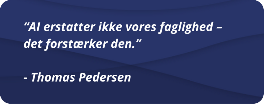 Selvom AI er blevet en naturlig del af vores arbejde, går vi altid til teknologien med en kritisk tilgang. Vi tager ikke alt for gode varer, og vi er meget bevidste om, at AI ikke altid har den fulde kontekst eller det korrekte svar. Hos Viking Data arbejder vi ud fra en grundlæggende filosofi: AI er et stærkt værktøj – men det kræver menneskelig dømmekraft. Derfor bruger vi også tid på at lære, eksperimentere og forstå teknologien bedre. I nogle situationer tager det længere tid at bruge AI, fordi output skal vurderes, tilpasses eller helt forkastes. Og det er okay – for det er en del af læringskurven. Vi tror grundlæggende på, at AI vil skabe flere muligheder end begrænsninger, så længe det bruges ansvarligt. Det er netop det samspil mellem teknologi og menneskelig faglighed, der skaber de stærkeste løsninger. Og netop derfor ser vi ikke AI som noget fjernt fremtidsteknologi, men som et værktøj, der allerede er dybt integreret i vores hverdag.